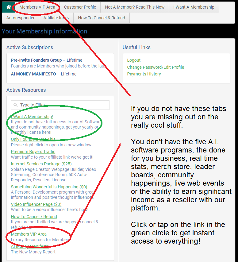 We have business membership areas with services in real time that you have never had, we have resources areas with training and fun things as well, that you have never had.
